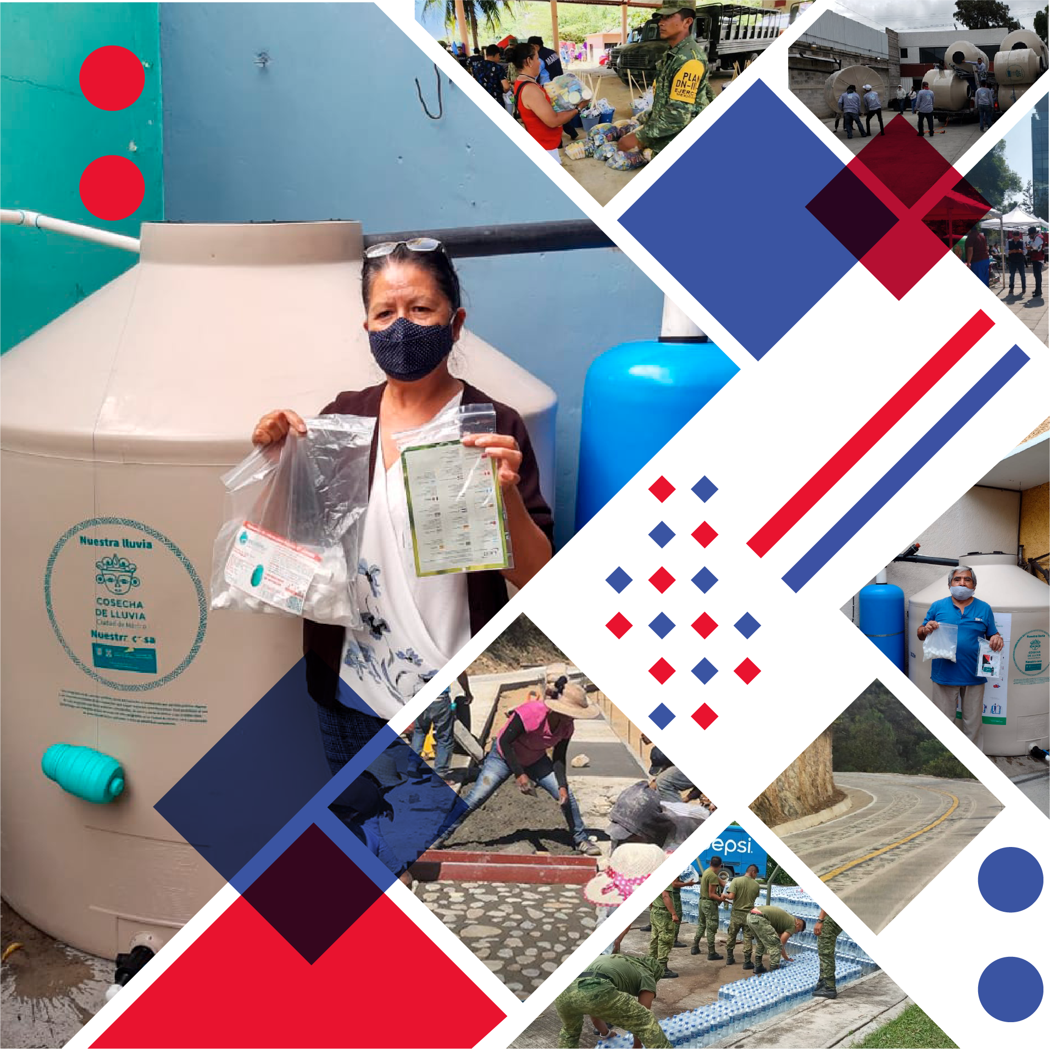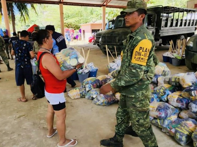 En coordinación con el ejército, surtimos en todo el país: láminas, agua, despensas, herramientas, kits de aseo personal, de limpieza, botas, impermeables y todos los insumos autorizados para la atención inmediata de emergencias originadas por desastres naturales, a fin de coadyuvar en que la población damnificada o susceptible de serlo pueda salvaguardar su vida y su integridad.